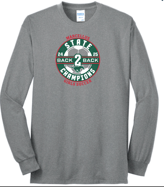 Marcellus Soccer State Champion Port & Company® Core Blend Unisex Long Sleeve Back to Back Logo