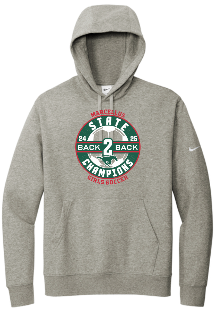 Marcellus Soccer State Champion Nike Club Fleece Unisex Hoodie Back to Back Logo