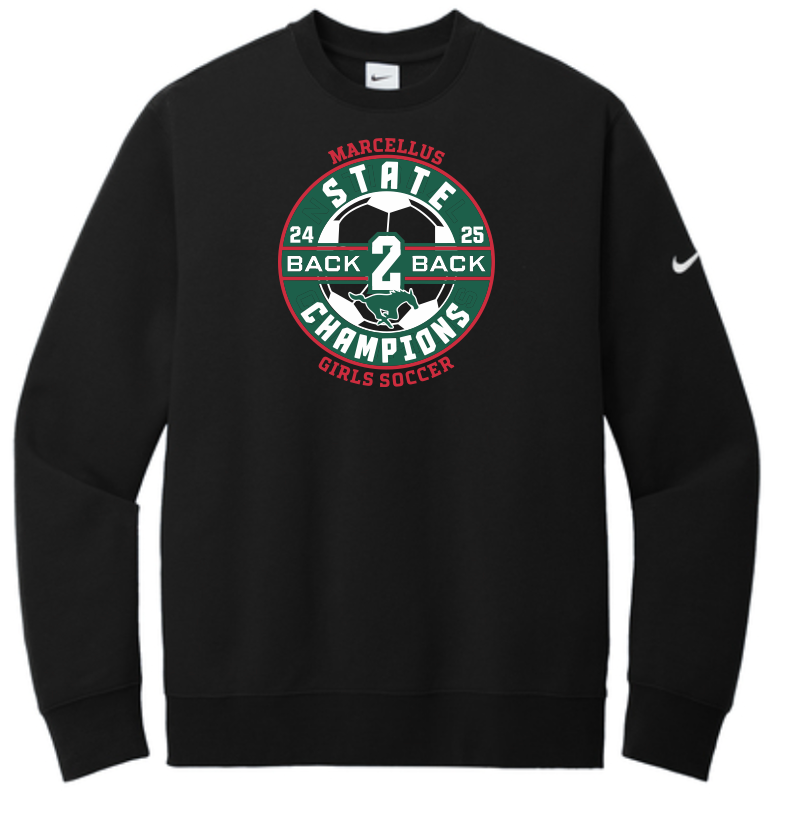 Marcellus Soccer State Champion Nike Club Fleece Unisex Crewneck Back to Back Logo